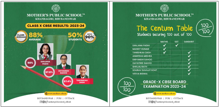 All of Tanishkaa Dash's success is dedicated to her teachers. We are proud of her board examination results and the school's support in her journey as a topper. The credit for her performance goes to her teachers’ hard work and patience. Mother’s Public School, Bhubaneswar, has not only imparted knowledge but also built her confidence. We thank the teachers and staff for their unwavering support, especially during challenging times, and for keeping students motivated toward success.